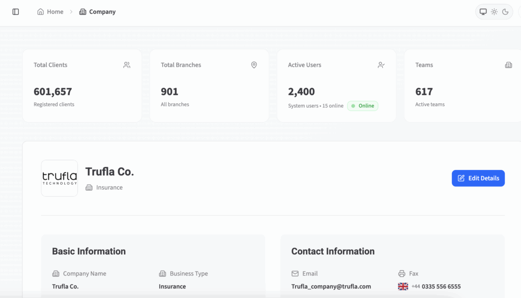 Manage your brokerage’s branding, contact info, time zone, and localization settings all from a centralized panel.